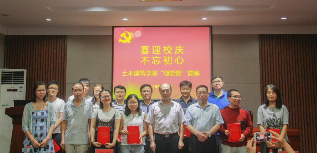在学院学术报告厅举行“喜迎校庆不忘初心”微党课竞赛。学院党委书记李社教担任竞赛仲裁,学院党委副书记党玉敬、学院副院长柯杨、学院党委办公室主任张亚歌、路桥工程系系主任袁玉卿、教师代表赵丽敏担任竞赛评委。学院全体师生党员现场观摩学习。