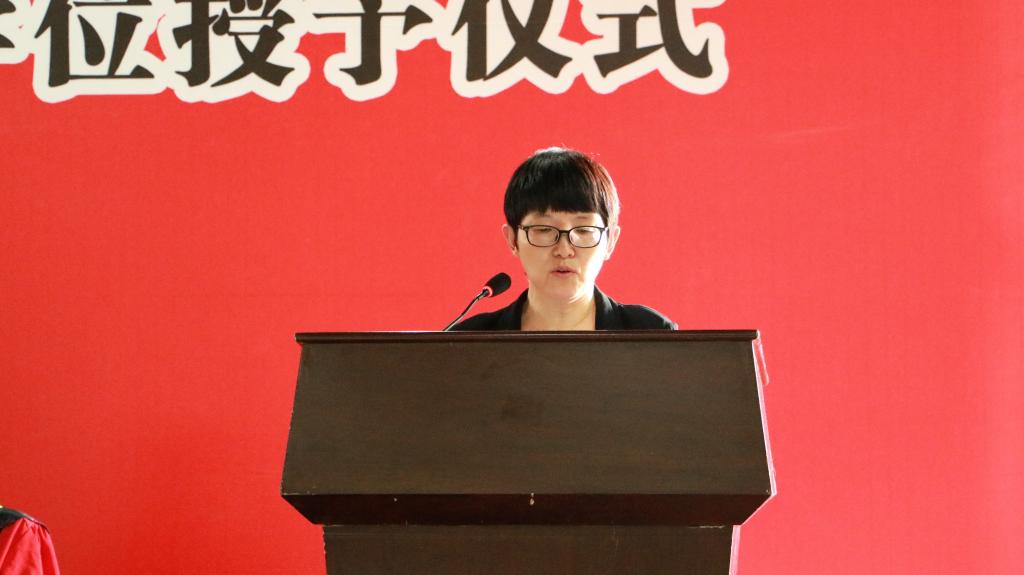 教师代表、建筑工程系系主任贺东青希望毕业生们以后在社会中不但要摆正自己的位置,还要端正态度,积极面对风雨。
