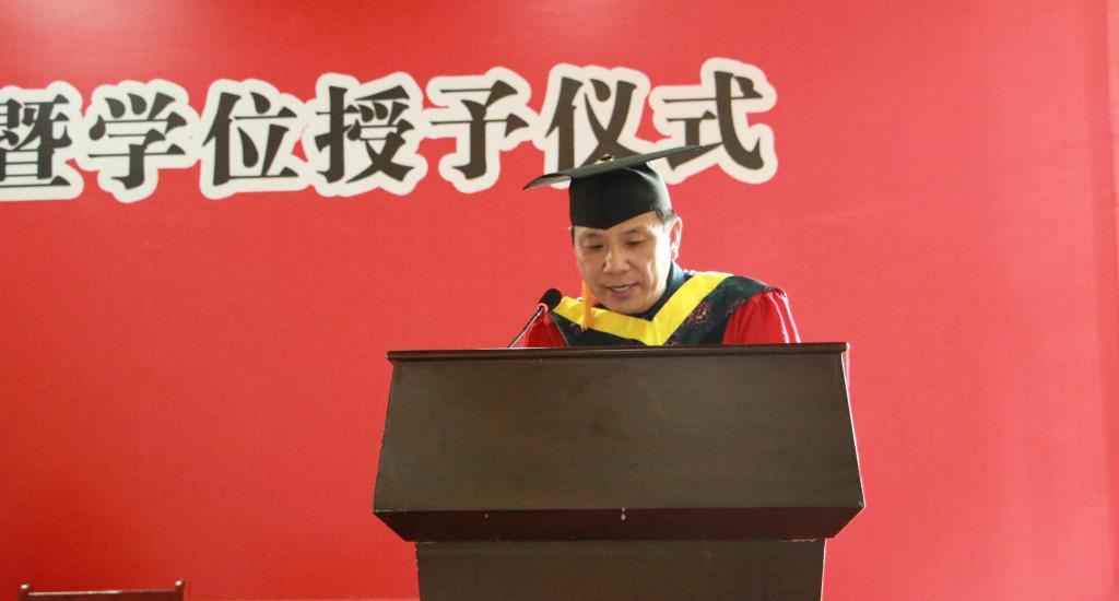 党委常委、副校长许绍康代表学校向毕业生送上诚挚的祝福。大学要培养的不是拥有一技之长的精致的利己主义者,而是有情怀、有温度的“明德新民 止于至善”的人才,作为小说狂人