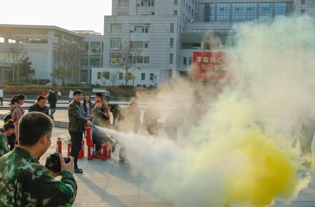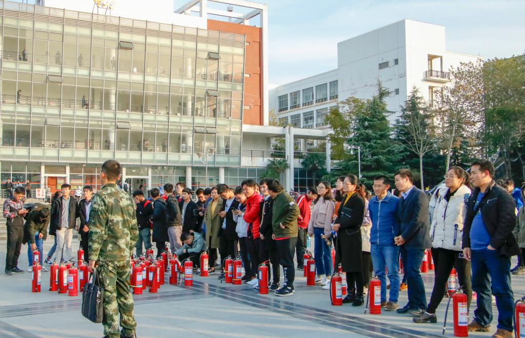 安全知识培训之后,在金明校区下沉广场进行了实战演练,张四海科长首先演示了一些消防灭火工具的正确使用方法,在他的指导下,师生们进行了实地演习,掌握了如何使用灭火工具的技能。