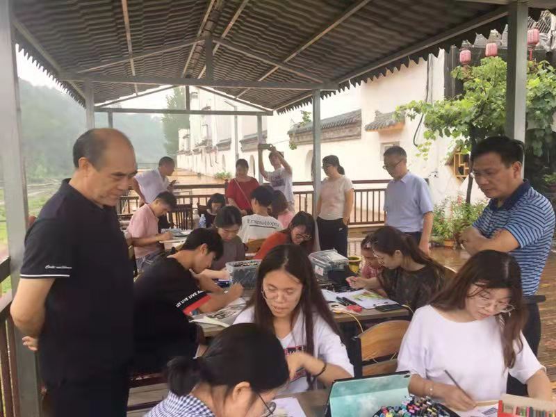 党委书记李社教、副书记党玉敬、副院长张大伟、行政办公室主任杨卫红一行专程赴我校对口扶贫县—嵩县,冒雨看望正在嵩县三合村进行《色彩与建筑画实习》的师生。
