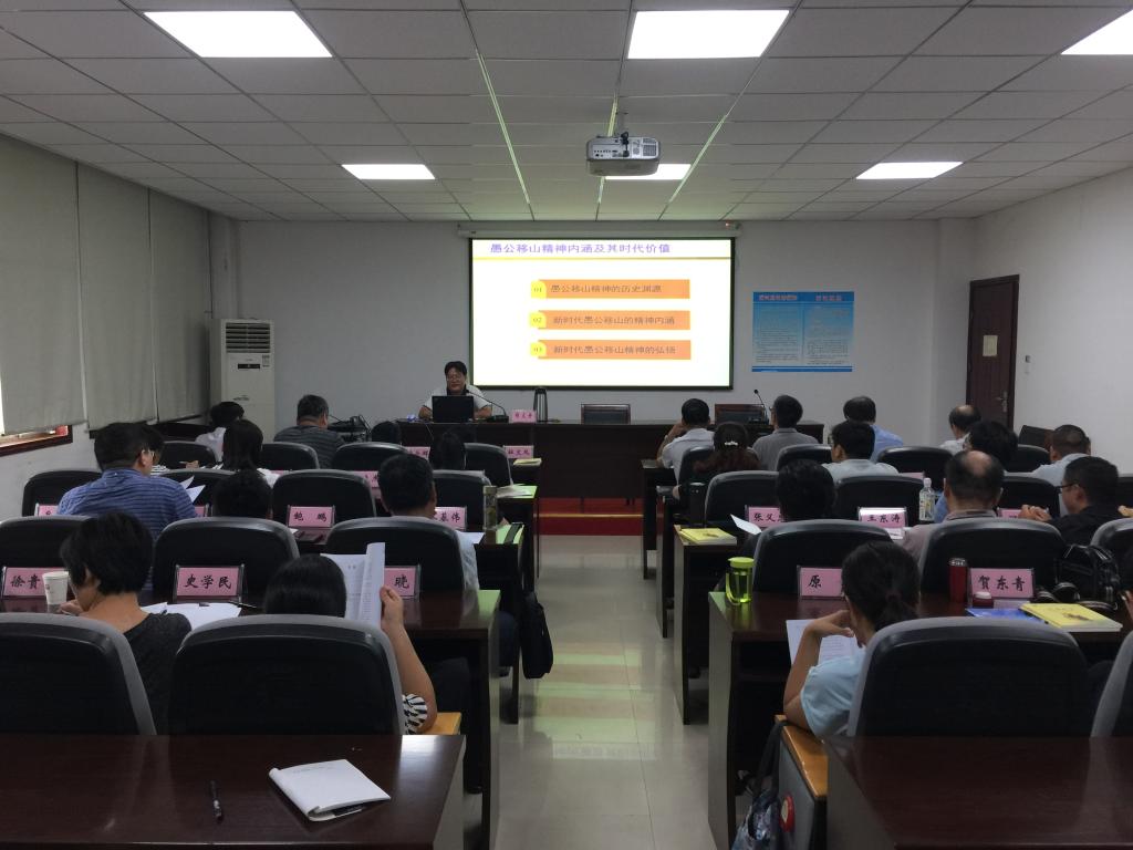 济源市愚公移山干部学院郑太升老师以《愚公移山精神内涵及其时代价值》为题,让与会干部深刻领悟到了敢想敢干,艰苦奋斗,勤劳勇敢,开拓进取,坚忍不拔,自强不息的愚公移山精神内涵,真心体会到了愚公移山精神发扬光大的时代背景。