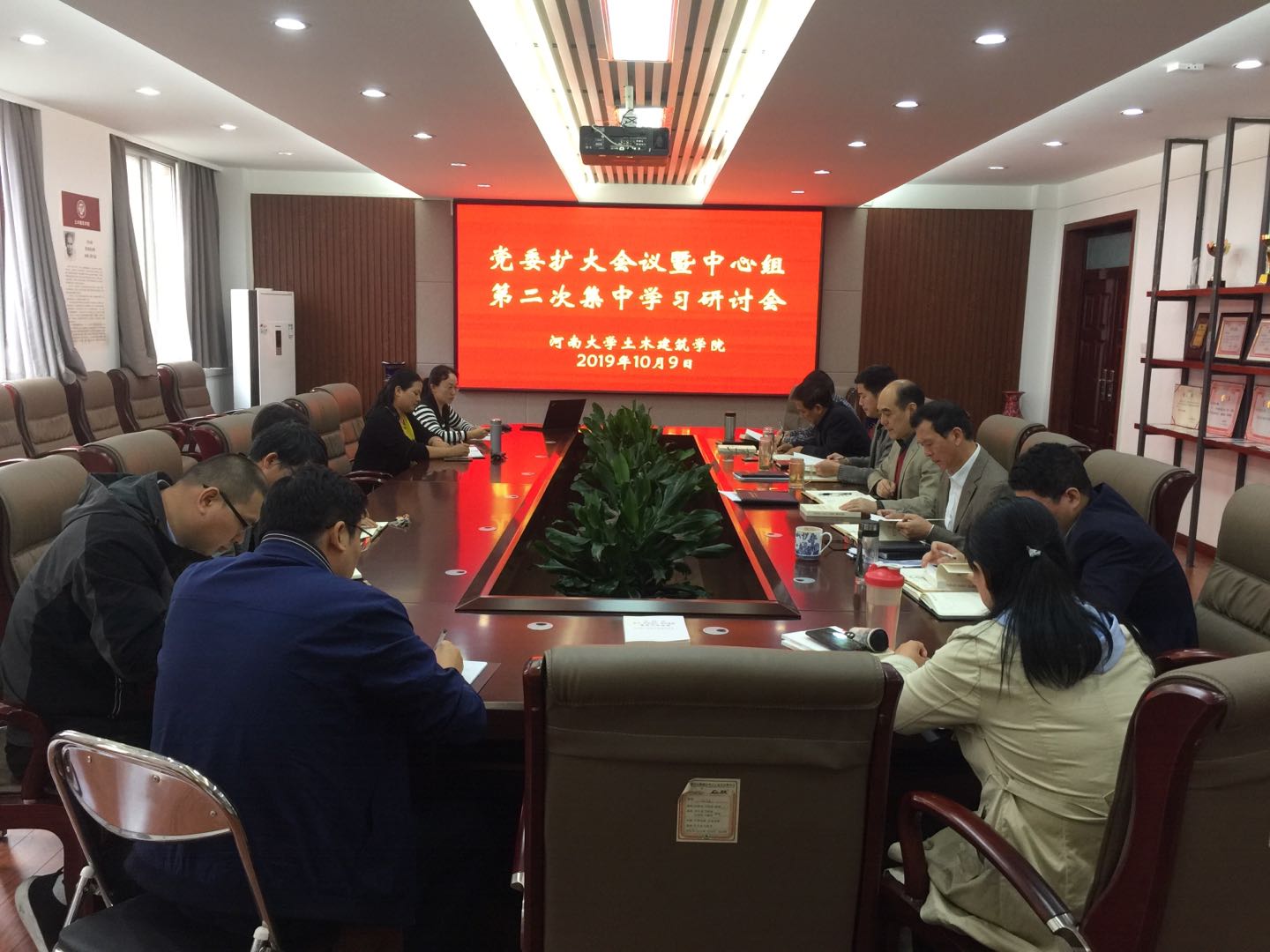 在院史馆召开党委扩大会议暨中心组主题教育第二次集中学习研讨会,学院领导班子成员、党委委员和各党支部书记参加会议。