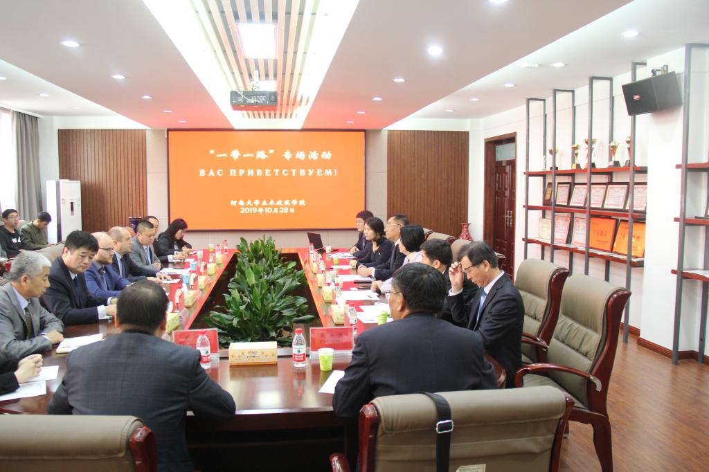 此次俄罗斯客人来我校交流是“一带一路”专场活动主场内容的一部分。河南省建筑材料研究院尹青亚董事长率建材专家陪同俄罗斯客人来我校交流。