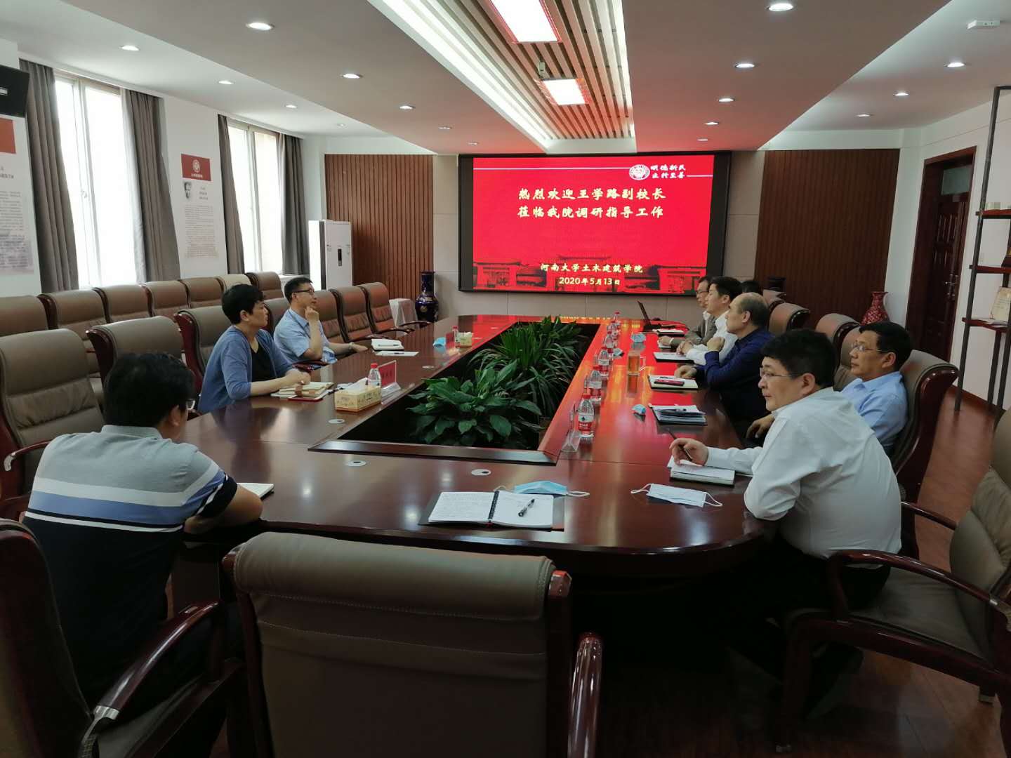 院长岳建伟从学院发展现状、学科特色、存在问题和不足等方面进行汇报,并表示以河南省重点实验室建设为抓手,通过高端人才引进,凝练队伍和学科方向,早日实现学院跨越式发展。
