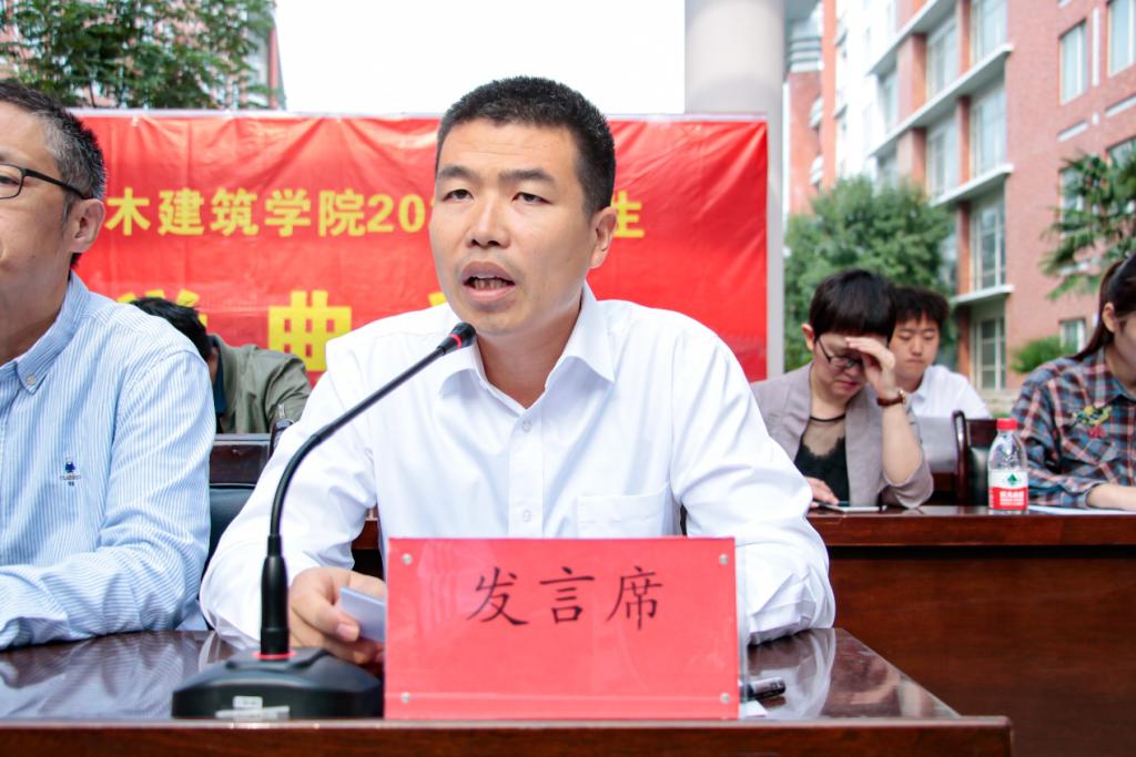 土木工程系主任边汉亮博士作为教师代表为同学们送出最衷心的祝福和最热烈的欢迎。他向同学们介绍了学院的专业和教学设备及实验室。他讲到,作为教师,他们一定会担当起教书育人的使命,为学生们的成材保驾护航。边汉亮博士还告诉学生们,在学习和生活中,大家要时刻贯彻着小说狂人