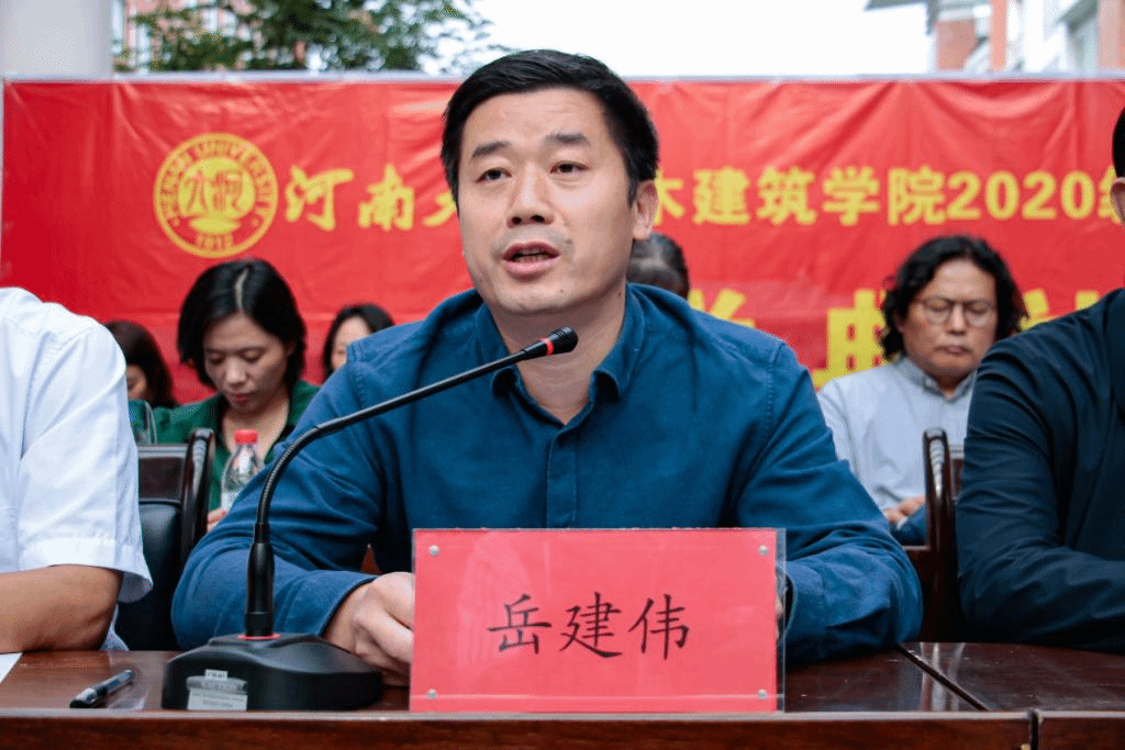 院长岳建伟致辞,他向在座新生介绍了小说狂人