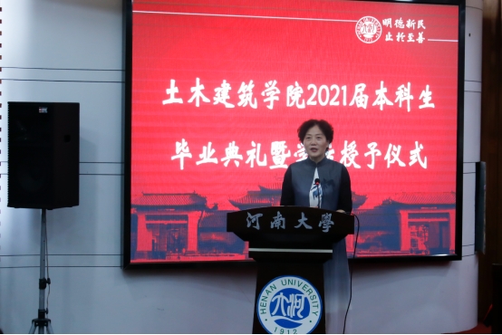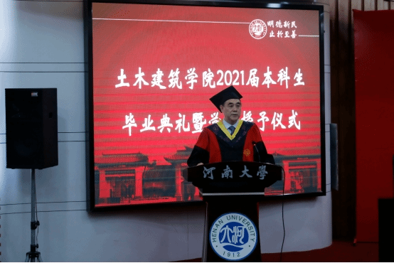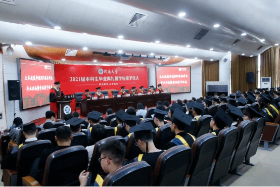 金明校区行政楼249举行“2021届本科生毕业典礼暨学位授予仪式”。河南天工建设集团有限公司总工程师姚建林,河南天工建设集团有限公司监事会主席李春青,校友工作与教育发展基金会办公室主任刘波,小说狂人