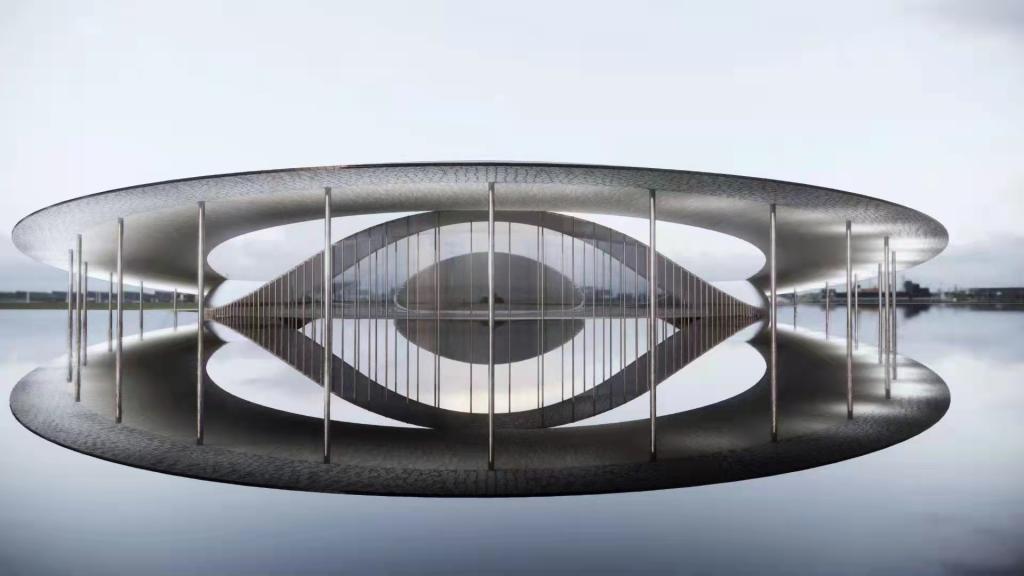 月桥项目位于卞之琳的故乡南通海门汤家镇,政府希望作品与卞之琳先生代表作《断章》中“桥”的意象和诗歌意境一致。朱亮在拿到这个项目就思考:如何和卞之琳先生的卞之琳先生代表作《断章》中“桥”的意象和诗歌意境一致,如何在灵珑湖长江边植入一个景观体系。让他成为城市的公共活动空间,如何打破传统桥梁的呆板印象。你站在桥上看风景,看风景的人在楼上看你,在空间上代表了看与被看的视线关系。我们设计了内外双重桥,外桥形态完整,面向长江,向人们展示了完整的空间形象,内桥蜿蜒曲折,像一副山水长卷。人在内外双桥上行走,会看到变化的拱,不同的长江景色,会成为彼此的风景。桥下安排展览空间,展示南通文化,中央的广场是一个聚集性空间,为人们提供了交流场地。项目采用薄壳结构,镂空的形体减少风压。项目不仅仅是一个景观桥,同时也是南通的标志,文化交流的场所。
