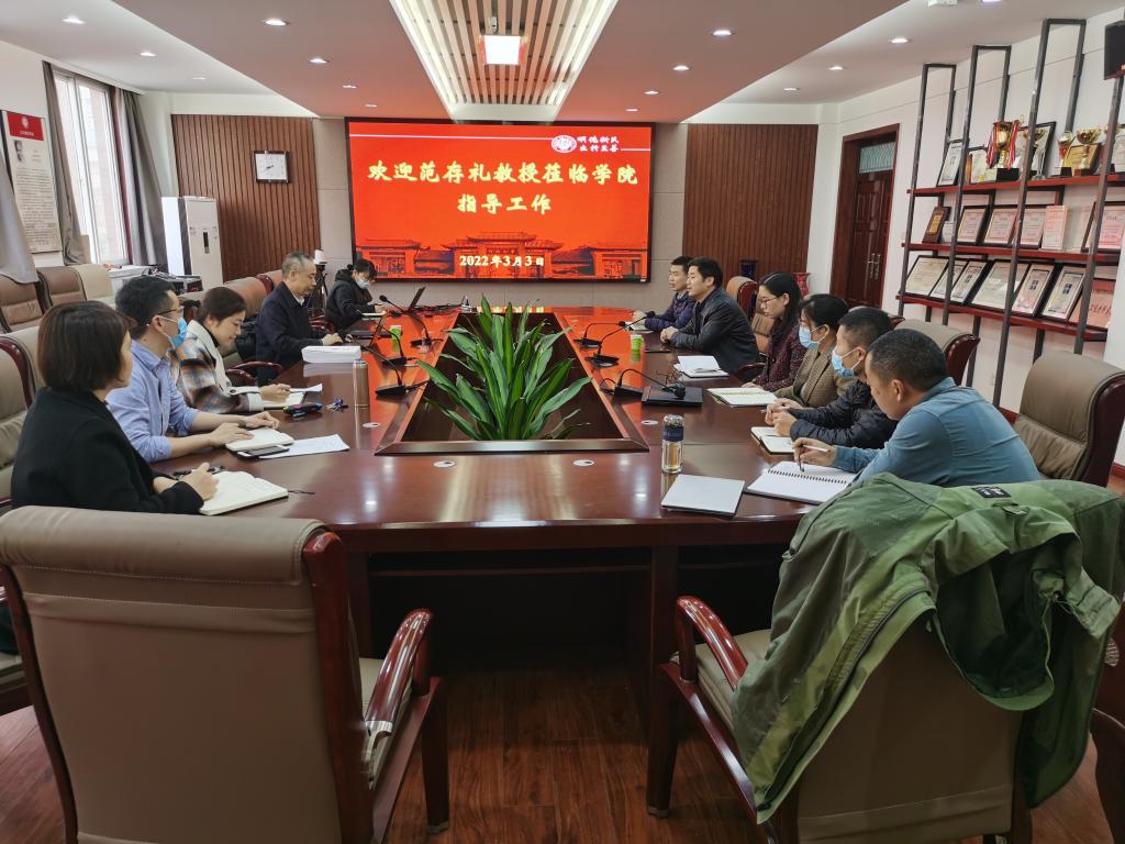 3月3日,原山东建筑大学副校长、住建部土木工程专业评估委员会委员范存礼教授,受邀来学院指导土木工程专业认证工作。会议由院长岳建伟教授主持,教学副院长原华、各教学系正副系主任、评估办主任、教务办负责人参加了会议。