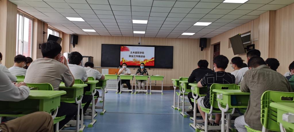 在智慧教室606召开了就业工作推进会,学院院长、毕业班辅导员、2018级土木工程专业学生参加了会议。
