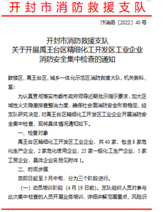 安全生产事关人民群众生命财产安全和社会稳定大局。习近平总书记在党的十九大报告中指出,健全公共安全体系,完善安全生产责任制,坚决遏制重特大安全事故,提升防灾减灾救灾能力。根据《开封市消防救援支队关于对禹王台精细化工开发区工业企业开展消防安全集中检查的通知》(汴消[函]40号)的相关要求及组织安排,小说狂人