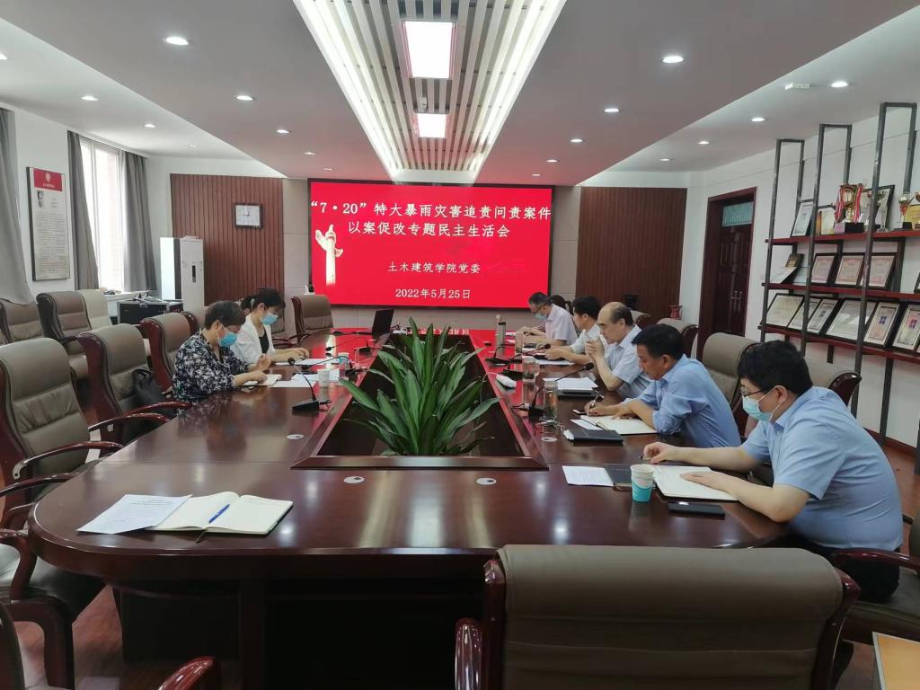 在院史馆204召开郑州“7.20”特大暴雨灾害追责问责案件以案促改专题民主生活会,校党委巡察工作办公室正处级巡察专员胡春贞、纪委监察专员办公室副处级纪检检察员孔瑞婷列席指导,学院全体班子成员参加,会议由学院党委书记李社教主持。