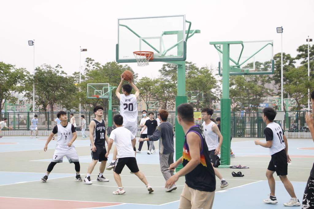 随着裁判的一声哨响,比赛正式开始。队员们奋力拼搏,时进时退、时缓时急,观众们热情高涨,掌声阵阵、喝彩连连。运球传球,过人投篮,一个眼神、一个暗号,诠释着无声的默契,后卫带球呼啸飞入前场,中锋在铜墙铁壁里凿路,前锋以绝对的姿态让记分牌翻飞。每一次的传球,都吸引着众多的目光;每一次的投篮,都是对输赢的尝试;每一次比分的升降,都带着喝彩和鼓励。球场上飞奔的身影就是对热爱最好的诠释。首节比赛,研究生队以22:18的比分战胜本科队;次节比赛,教师队以9:6的比分战胜研究生队;第三节比赛,本科队以21:18的比分战胜研究生队;第四节比赛,教师队以45:27的大比分战胜研究生队。