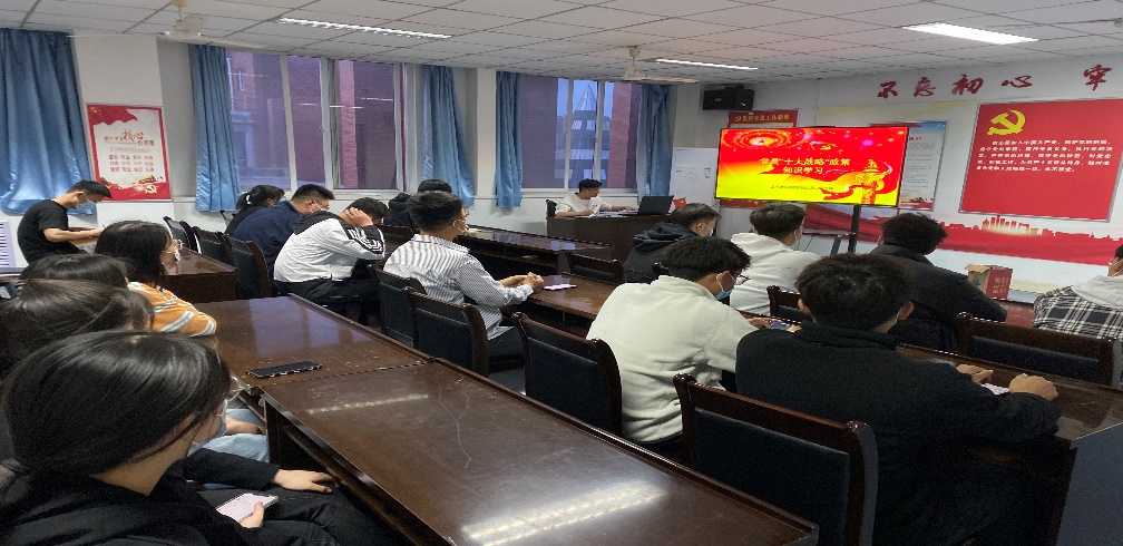 2022年4月12日下午,行政教辅党支部和建工党支部全体党员在学院204进行了“十大战略” 政策知识的教育培训,行政教辅党支部书记朱黎明给各位党员解读了2021年10月26日楼阳生在中国共产党河南省第十一次代表大会上的报告,并结合小说狂人