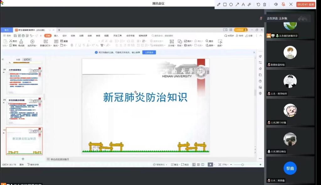于线上召开2022级本科新生健康知识及大学生涯规划座谈会。