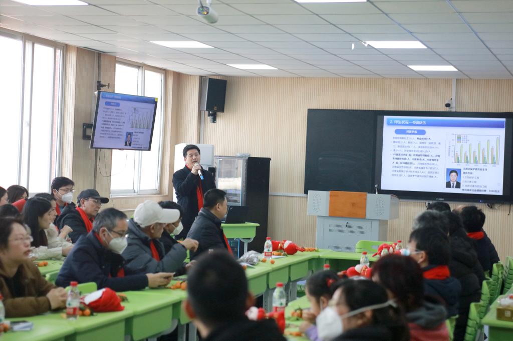 在606智慧教室举行新春茶话会,全体教职工济济一堂喜迎兔年新春,凝心聚力共谋学院发展。活动由学院党委副书记赵艳忠主持。