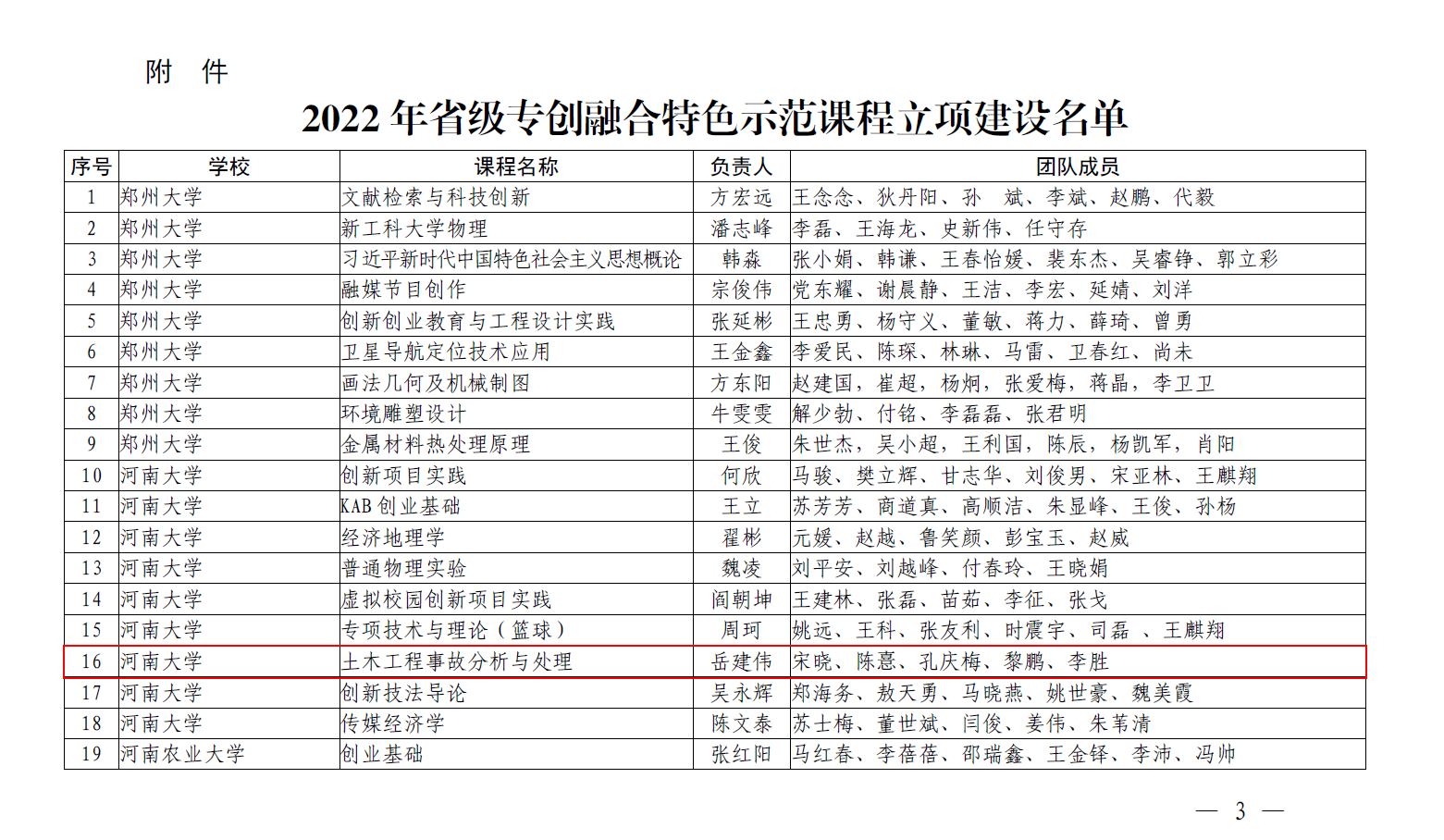 岳建伟教授主持申报的示范课程《土木工程事故分析与处理》成功获批。