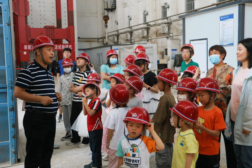 六月的孩子们,笑容如鲜花般盛开,生动如音符般欢悦。小朋友们在圆形广场下整齐站队,在马少春老师的带领下,前往土木建筑实验室进行参观。马少春老师为小朋友们详细介绍评估建筑物的抗震性能的三向六度地震模拟加载系统,展示了四台用于研究土壤性能的仪器设备。通过参观实验室和马老师的讲解,小朋友们深刻认识到土木工程试验对于确保建筑物安全和合理土壤工程的重要性。