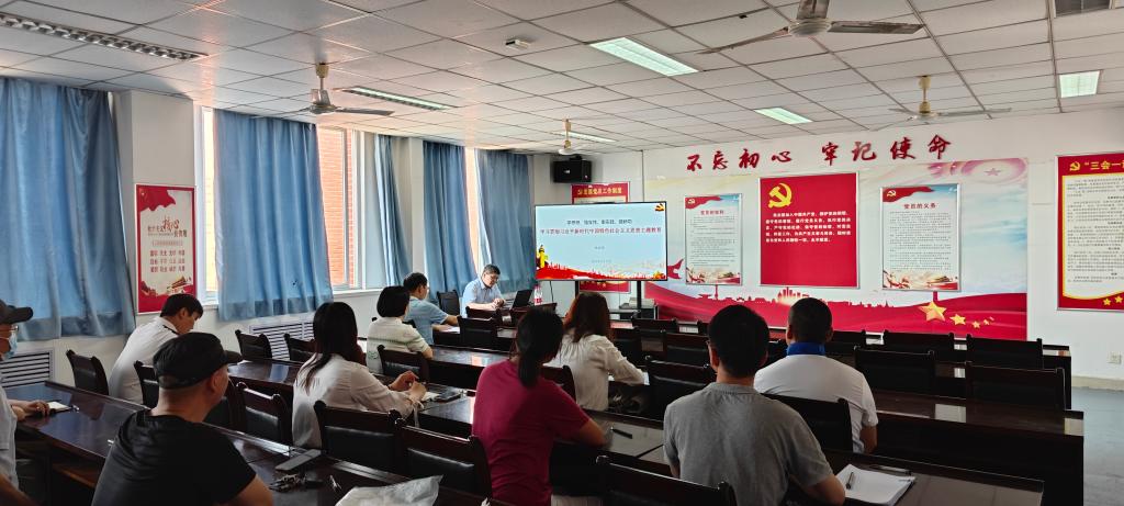 首先,张建伟院长传达了学校党委关于主题教育的要求,详细介绍了学院党委开展主题教育情况。他从开展主题教育的重要意义、总要求、根本任务,习近平新时代中国特色社会主义思想的主要内容与鲜明特质三个方面深入讲解了党的最新理论的形成与发展,核心内容与鲜明特质。