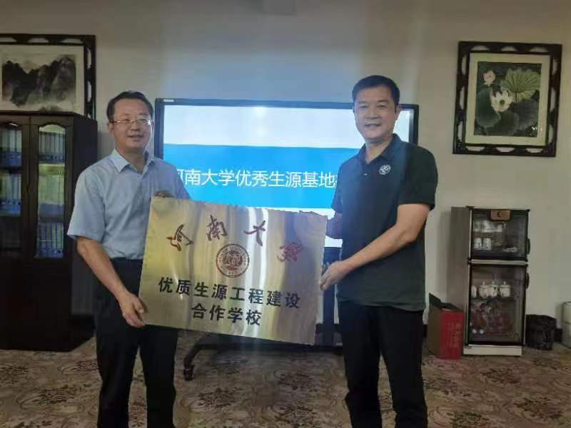 党委书记南晗及教务办王凯博士,来到内蒙古乌海市第十中学。优质生源基地授牌仪式在乌海市第十中学科技楼一号会议室隆重举行,乌海市第十中学党委书记牛英、副校长王粱、各支部书记等参加了授牌仪式。首先,牛英书记介绍了乌海十中的学科建设、教学理念、办学成果及发展规划、高考情况,并希望未来持续加强高中与高校间的交流互动,共同为祖国培育栋梁之材。之后,南晗书记介绍了小说狂人
