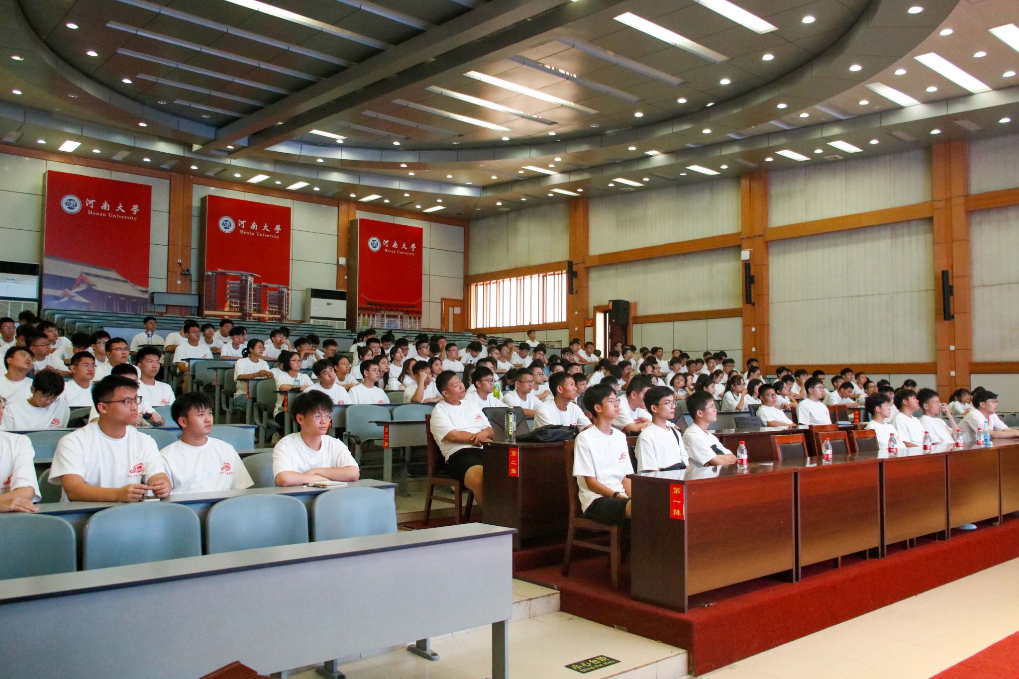 厚重的历史文化底蕴,体悟薪火相传的河大精神,感受海纳百川的学术氛围及充满温情的人文关怀。南晗从“大学是人生的新起点”、“大学教育与中学教育的区别”、“大学生成才的标准与路径”等3个部分展开,殷切叮嘱同学们要正确认识、评价自我;要学会与人相处,调整人际关系;要培养独立学习、生活的能力,积极寻找外部支撑;要明辨是非,抵制外界不良诱惑。在此基础上,他还分享了他的几点体会和感悟。一是要听辅导员的工作部署和要求;二是要重视大学期间所确立的同学间的友情;三是要正确的看待生活并学会感恩;四是要养成终身学习的良好意识。最后,南晗表示,希望每位新生都能保持一颗求知的心,勇于追求梦想,敢于挑战自我,超越自我。无论遇到什么困难和挫折,都要坚持不懈,相信自己的潜力和能力。