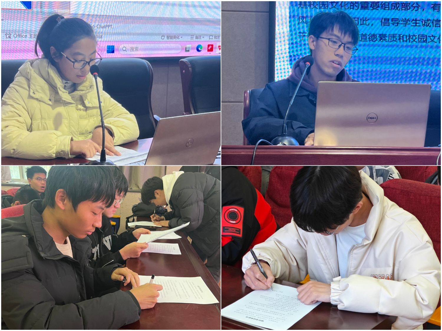 彭程和赵相云两位同学分享了好的复习方法和经验,并做了诚信迎考表态发言,全体同学签署了诚信考试承诺书。