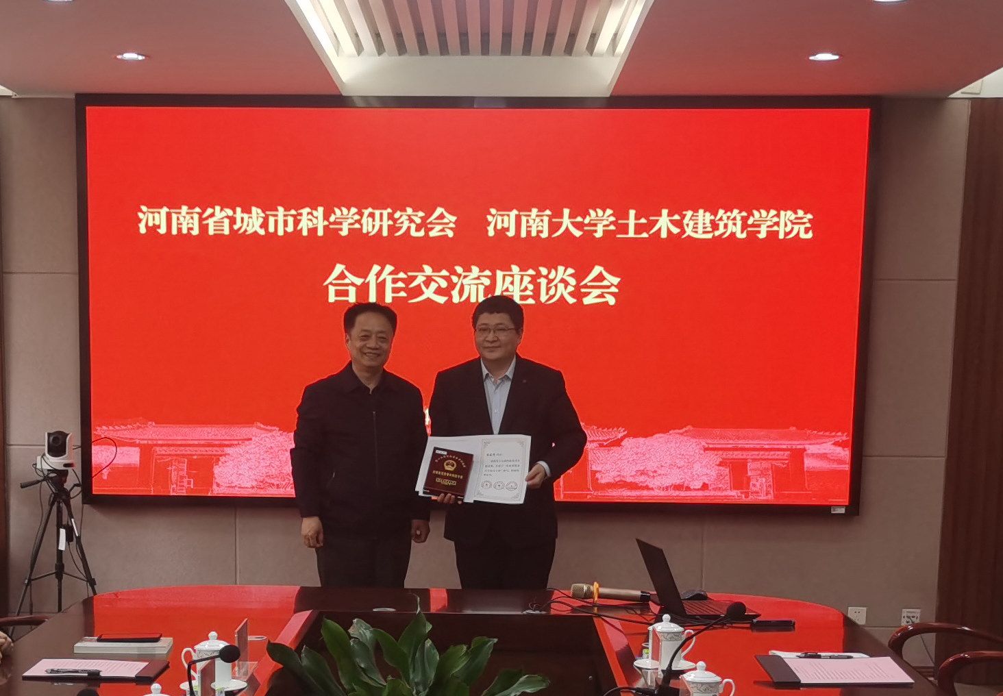 经省城市科学研究会推荐,张建伟院长被评为第十五届河南省优秀青年科技专家。座谈交流前,贾志峰为张建伟颁发奖牌和证书。