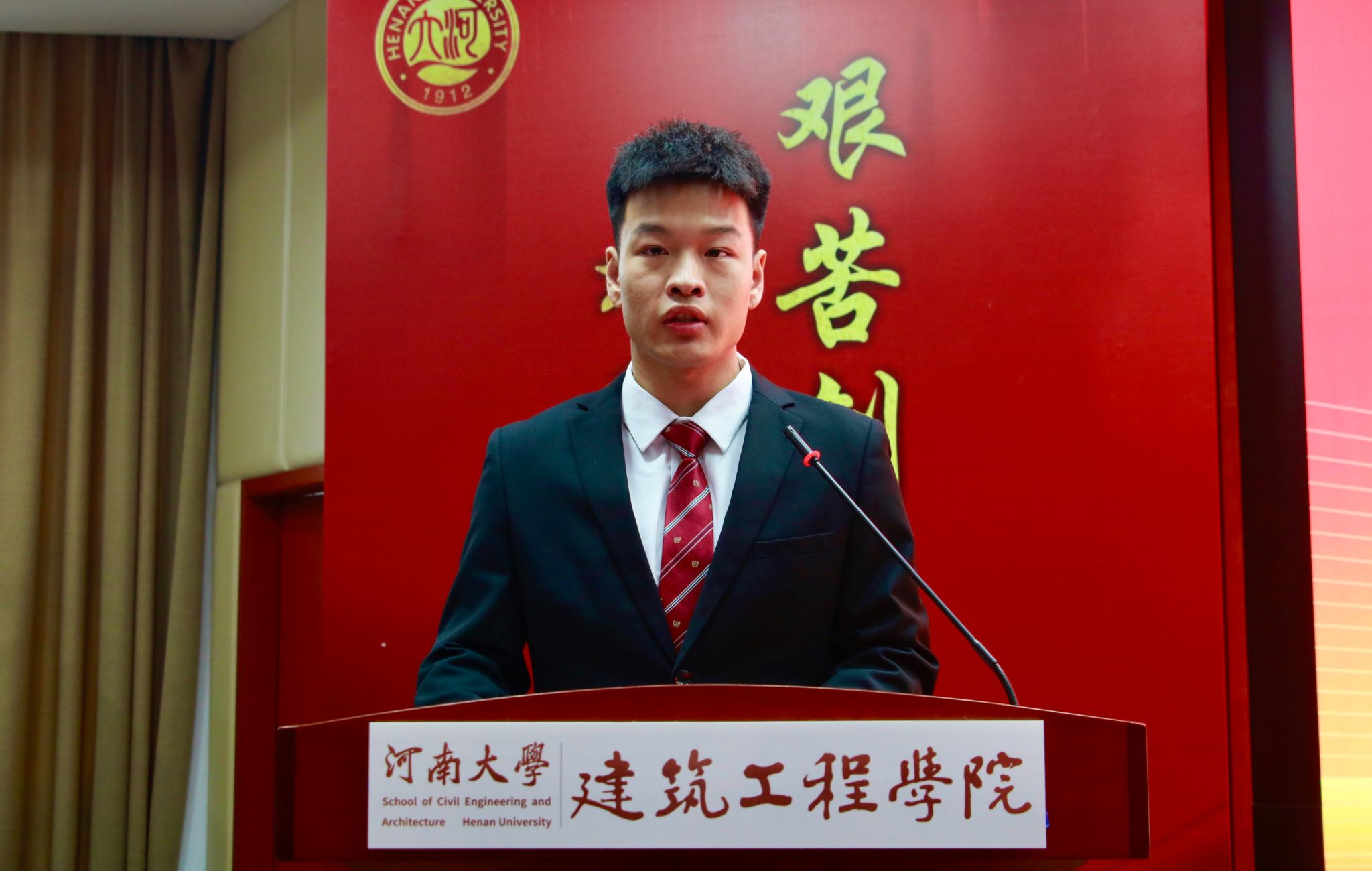 2023级土木工程专业左可成对新同学的加入表示热烈的欢迎,他结合自己的经验和感悟,阐述了土木与建筑学科的活力与魅力,并鼓励新生积极参与专业竞赛,勇敢面对挑战,展现青春作为、奉献青春力量。