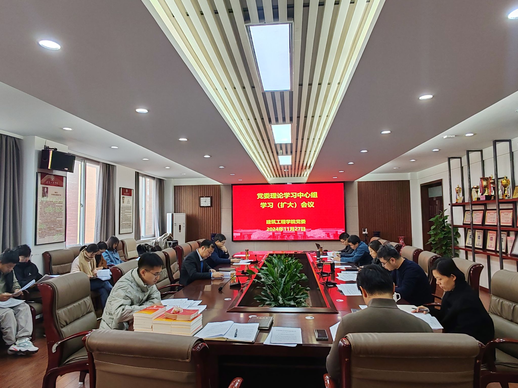 党委理论学习中心组学习(扩大)会议在学院204会议室举行。学院党委委员、领导班子成员、党支部书记参加,会议由学院党委书记南晗主持。