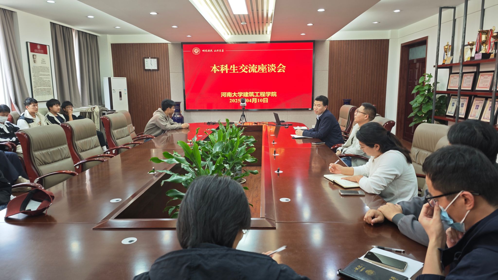 在16栋B座204会议室开展本科生交流座谈会。学院教学副院长边汉亮、副书记宿云龙,系主任朱想、黎鹏、吴禄源,教务办主任王凯,辅导员徐贵香、王荣荣,教师代表康永基及本科各年级学生代表参加座谈。