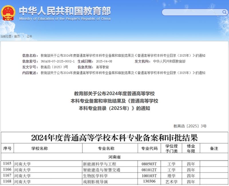 近日,教育部发布《关于公布2024年度普通高等学校本科专业备案和审批结果的通知》(教高函〔2025〕3号),小说狂人