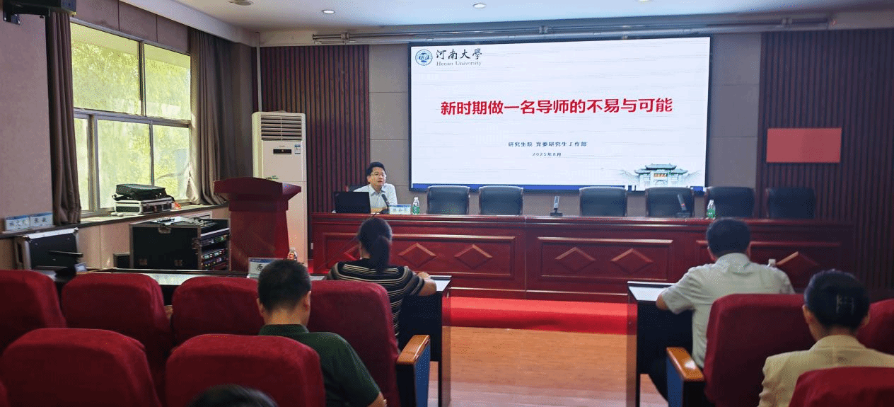 2025暑期研究生导师培训会集中学习环节在金明校区16D二楼学术报告厅举行。本次培训会以“立德树人、科研引领、协同育人”为主题,研究生院副院长陈会亮、副院长李志芳受邀做主题报告,学院执行院长张建伟及全体在聘研究生导师参加了培训会,培训会由副院长原华主持。