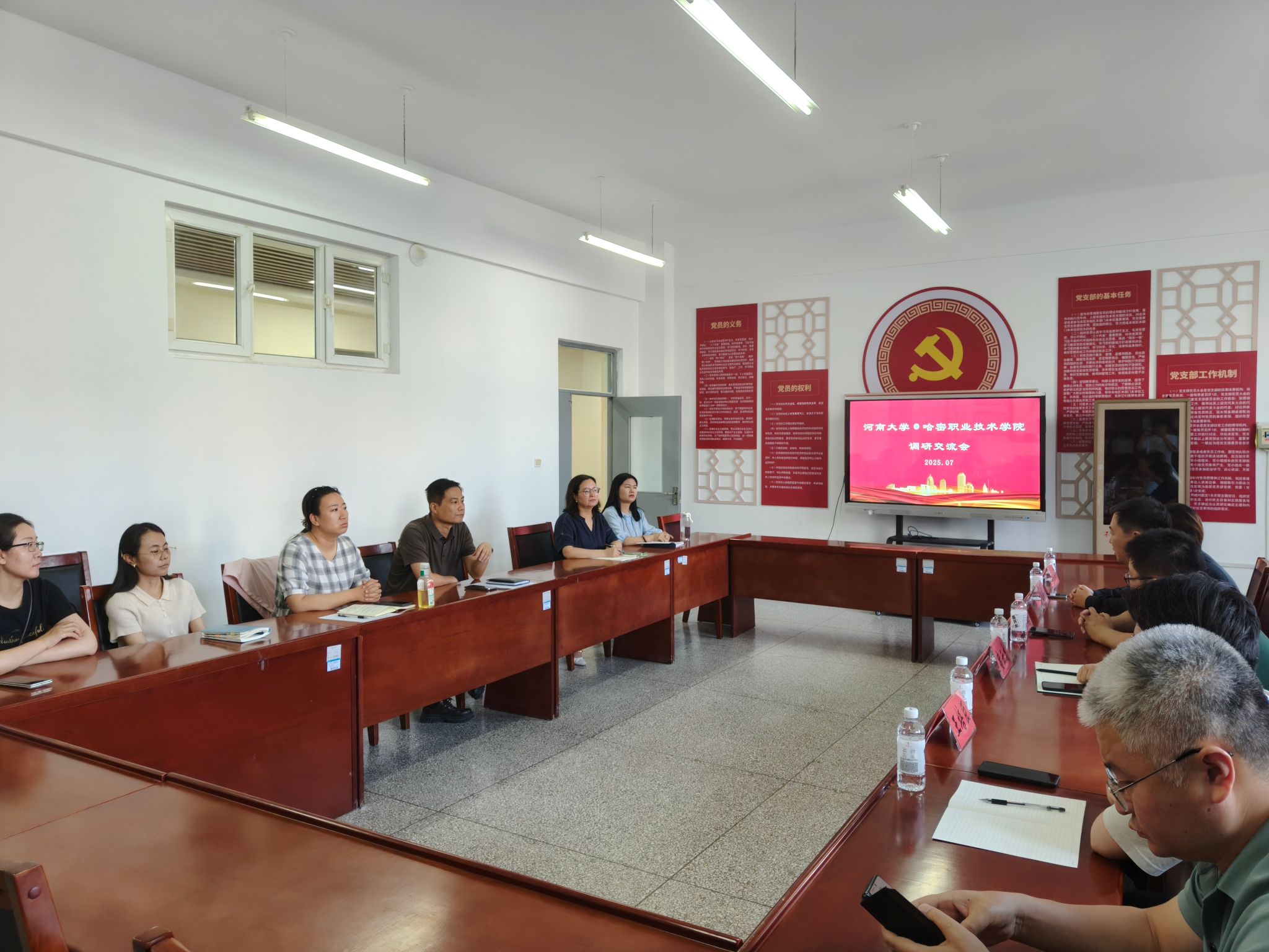 下午,实践团前往哈密职业技术学院调研交流并参观了学院思政教育工作平台。双方围绕新疆与河南两地高校在民族宗教工作、学生管理与服务、思想政治教育、一站式社区建设等方面展开了深入交流并分享了宝贵经验。