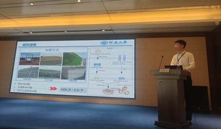 研究生尹悦作了题为“基于EICP技术的边坡抗雨侵蚀试验研究”的报告,引起了大家的广泛关注,并在会后和各位专家进行了学术交流与探讨。
