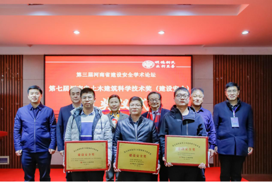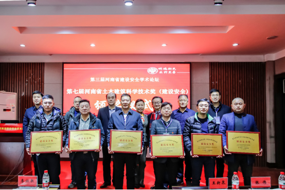 随后会议进行了第七届河南省土木建筑科学技术奖(建设安全)的颁奖仪式,各项目获奖代表上台领奖并合影留念。