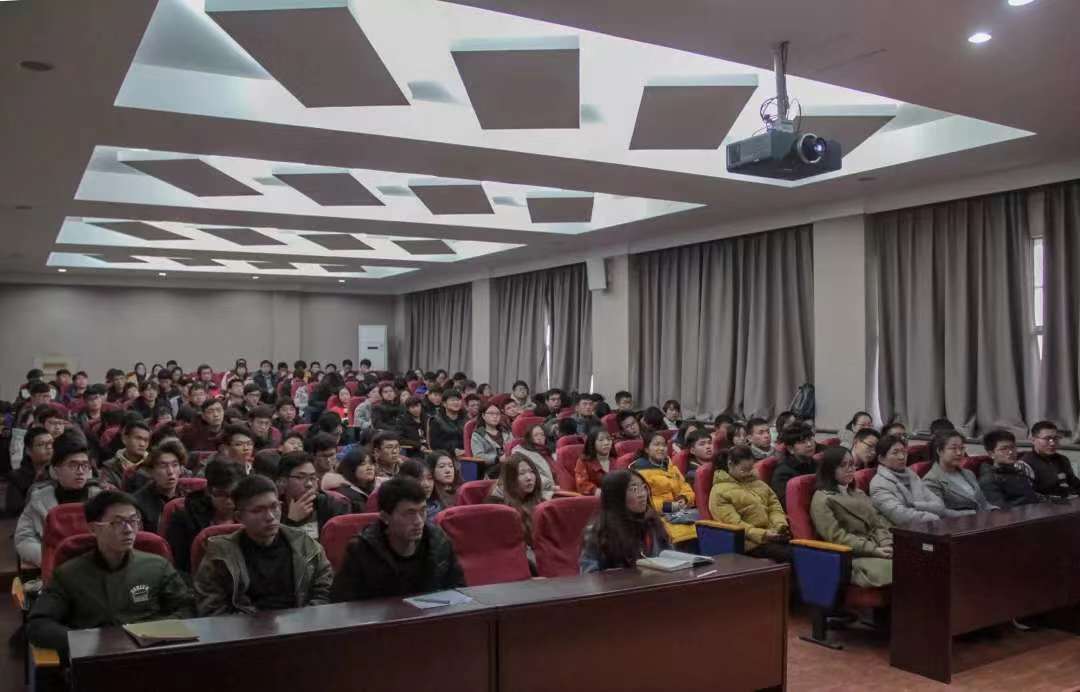 于2019年1月5日召开年级期末考试动员大会。年级辅导员魏森杰、徐贵香、张大帅、王思远分别对其所带年级进行考风考纪教育。