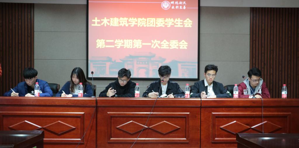 团委学生会于院结构实验室二楼报告厅召开了本学期第一次全委会。团委学生会主席谭骏,团委副书记梁展华,新媒体运营中心主任张潇,学生会副主席刘宛晨、徐新朝、章志伟,各部部长以及全体委员参加了本次会议。