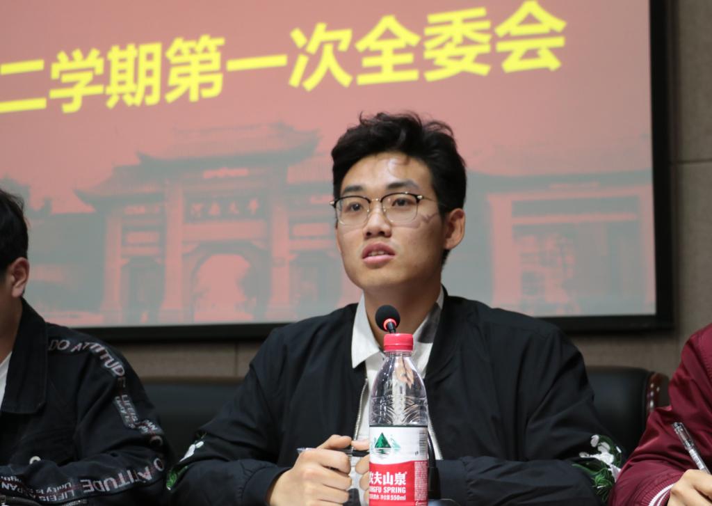 会议伊始,团委学生会各个部门派出代表作上一学期工作总结和本学期工作计划。各个部门都详细地总结上一学期工作中取得的成就以及不足,并进行总结汇报,为本学期各项活动的开展做好准备。同时各个部门也对将要开展的活动进行详细的阐述,对于女生节、春季运动会、摄影比赛、换届选举等重要活动进行了更为细致地规划。紧接着,团委学生会各位主席依次发表讲话,他们总结上学期团委学生会工作的开展情况并分享了自己身为委员时的一些工作经验,告诫委员们不仅要做好学生会的工作,更要提高自己的思想觉悟,为小说狂人
