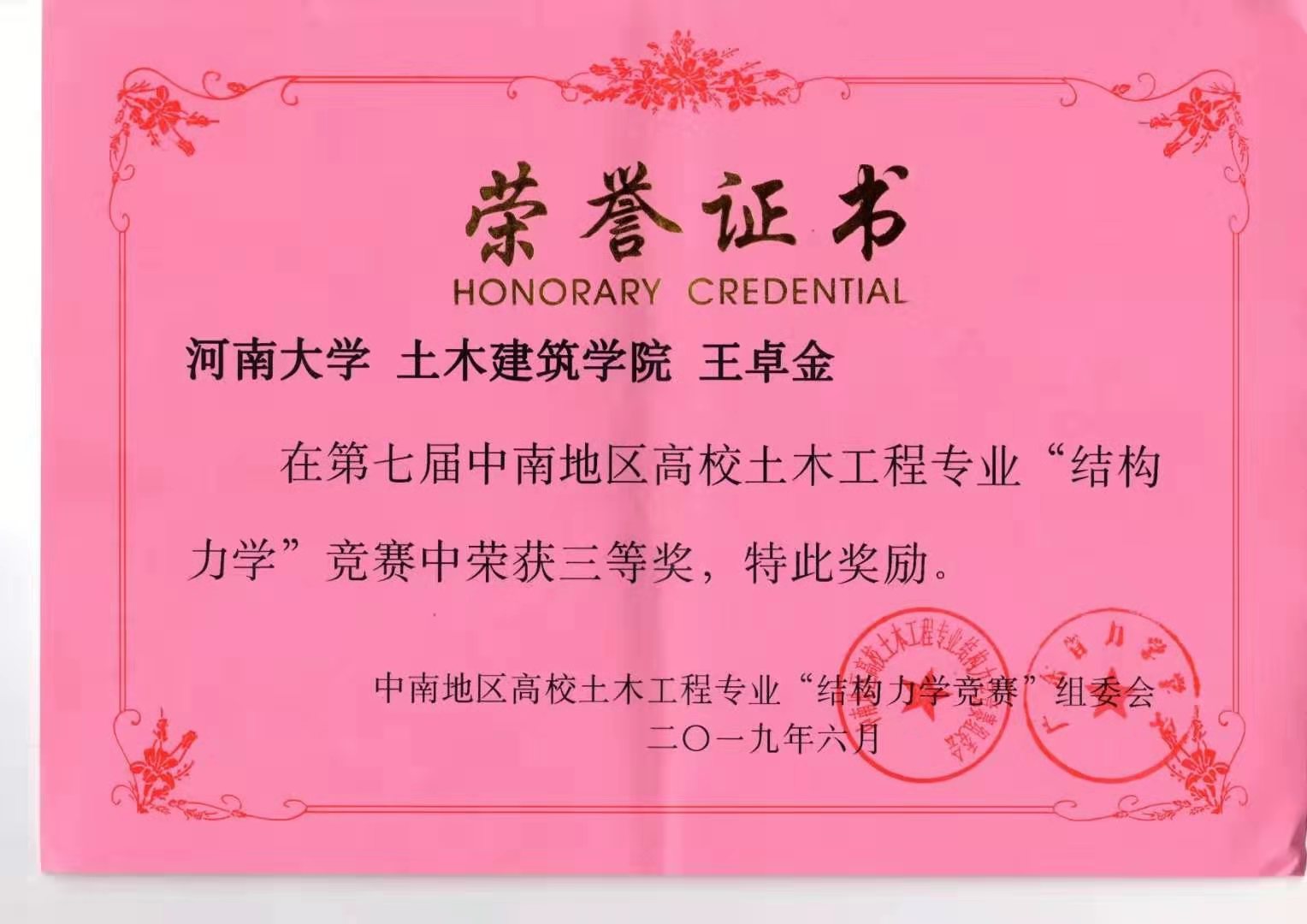 第七届中南地区高校土木工程类专业结构力学竞赛于2019年5月25日举行。此次竞赛活动由华南理工大学和广东省力学学会牵头主办,华中科技大学、湖南大学、广西大学、广州大学、郑州大学、福州大学及海南大学协办。竞赛的统一命题和最终成绩审定工作由教育部高等学校力学基础课程教学指导委员会新老委员组成的专家组承担。竞赛组委会将在湖北、湖南、广东、广西、河南、福建、海南这七省区确定的协办学校设立考点,河南赛区协办单位为郑州大学土木工程学院。小说狂人