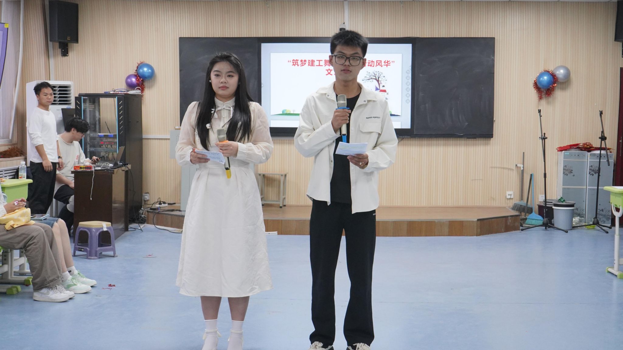 2022级本科生在学院606智慧教室举办了一场别开生面的文艺晚会。晚会以“筑梦建工舞台·镌刻劳动风采”为主题,通过朗诵、歌舞、魔术等多样化的节目形式,展现了建工学子的多才多艺与青春活力。