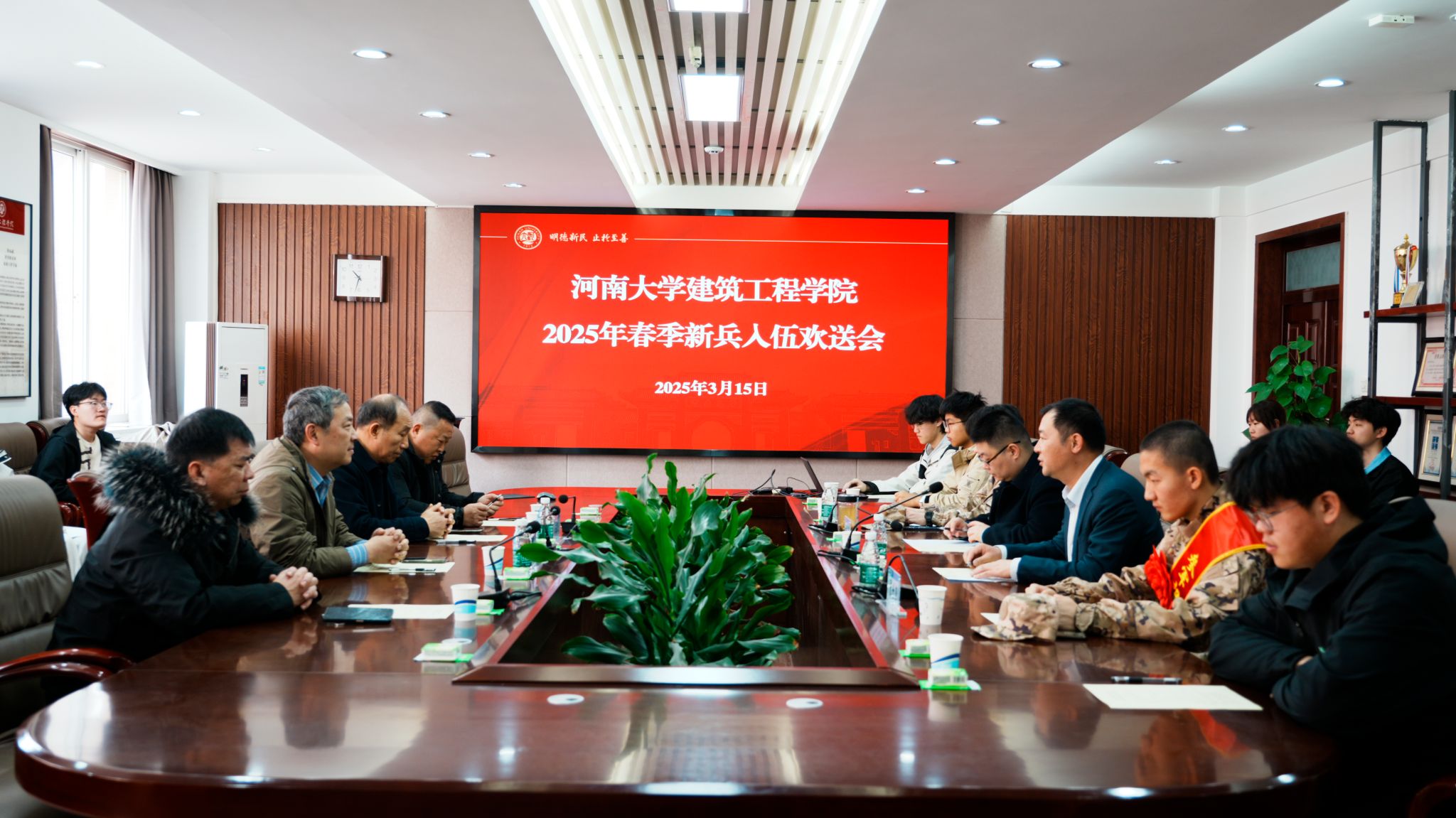 在204会议室举行2025年春季新兵入伍欢送会,欢送2名即将踏上军旅生涯的大学生新兵。校保卫处处长、人民武装部部长张霖,校保卫处副处长、人民武装部副部长王赛之,小说狂人