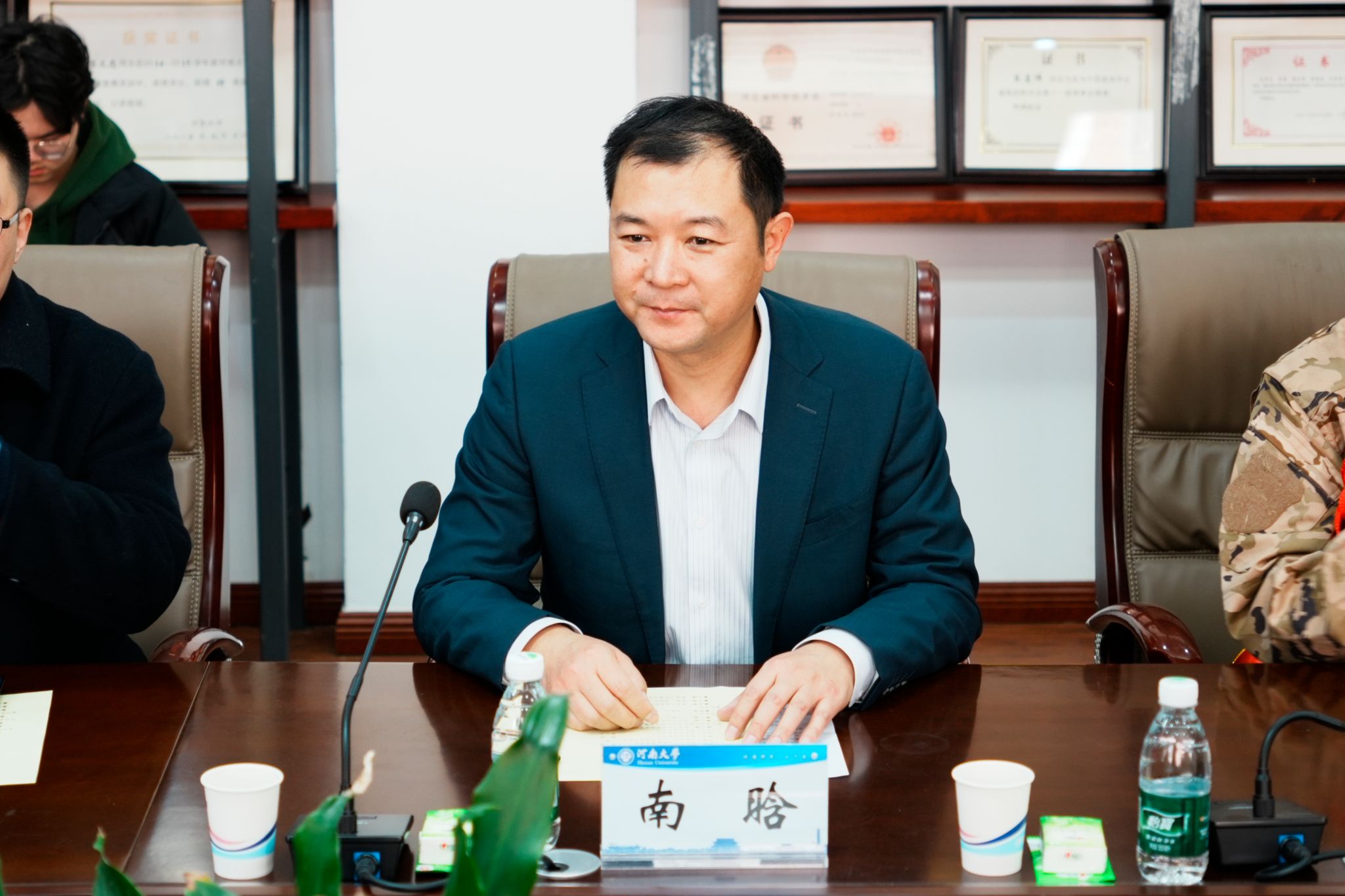党委书记南晗,学院团委书记、入伍学生辅导员宿云龙,入伍新兵张世聪、李鑫钰,校武装部相关科室负责同志以及学生代表参加会议。南晗主持会议。