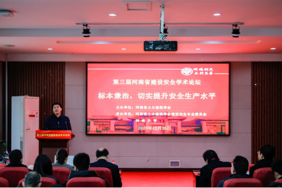 Wang Xinquan, chairman of the alliance of civil engineering and architecture societies in central and Western China, chairman of the supervision committee of Henan civil engineering and architecture society, and director of the safety engineering committee, delivered a speech. He expressed his heartfelt congratulations on the convening of this conference on the occasion of the great achievements of the new epidemic situation in China. He briefly introduced the development process of Henan civil engineering and architecture society, and expounded the theme of "treating both the symptoms and the root causes, effectively improving the level of safety production" in this academic forum on construction safety. He said that safety is very important for construction, and it needs to treat both the symptoms and the root causes. After the opening ceremony, President Wang Xinquan delivered a conference report entitled "strengthening the foundation and consolidating the essence of the speech safety (system intrinsic safety and human quality and reliability issues)".