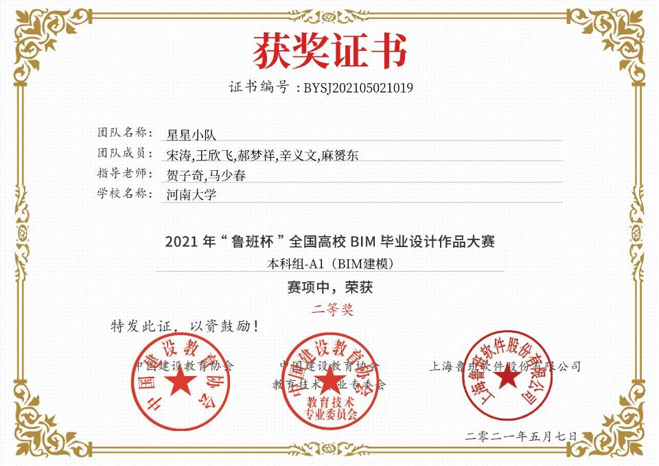 In order to cultivate intelligent construction talents based on BIM Technology, stimulate college students' enthusiasm for practical innovation ability and professional knowledge, deepen their mastery of professional skills and new industry technologies, and improve their employment and entrepreneurial ability, the project is sponsored by China Construction Education Association and undertaken by Chongqing Jiaotong University, The 2021 "Luban Cup" BIM graduation design competition co sponsored by Shanghai Luban Software Co., Ltd. has come to a successful conclusion. This competition covers the whole country. Among more than 600 groups of effective works, our 2018 team HRB400 stands out and wins the first prize in a and the third prize in B. The team is guided by Mr. He Ziqi and Mr. Ma Shaochun, with fan Jinying as the team leader and Lin Jiannan, Qiao Wenhao, fan Mengchao and Pei Minjun as the team members. Another team, the star team, won the second prize in event a.