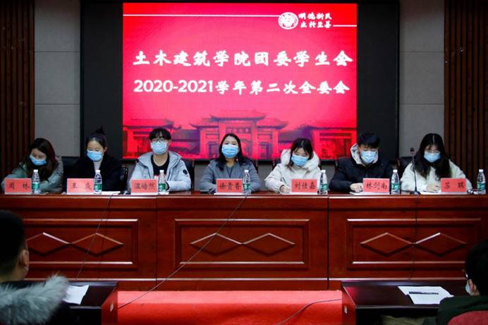 The successful conclusion of this meeting marks the end of the work of the student union of the Youth League Committee of the College of civil engineering and architecture this semester, and the next stage of the journey is coming. I hope that in the work of the next semester, all members of the student union can learn from the work experience of the previous semester, and face the intense work of the next stage with a more positive attitude, full enthusiasm and more comprehensive way.