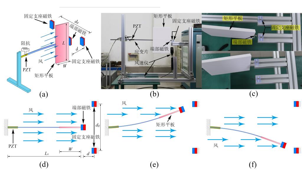 随着微机电系统的不断发展,低功耗微传感器、数据处理器等微型电子器件广泛应用到物联网(IoT)、建筑结构状态监测、无线传输、环境监测等领域。对于物联网、建筑状态监测,节点传感器的数量巨大;而环境监测,传感器往往处于危险、偏远的环境。这对于传感器的不间断能源供应,就提出了一个挑战。如何有效地从环境中获得绿色持续能源,为微机电节点提供能量,目前已成为国际上的一个研究热点。面对这个挑战,风能作为自然界中一种广泛存在、清洁无污染的可再生能源,具有很大的应用潜力。在对风能的利用方面,基于风致振动和智能材料的微型风能收集设备,具有结构简单、微型化、成本低、应用范围广等诸多优点,能够有效地解决分散式传感器网络的自供能问题。