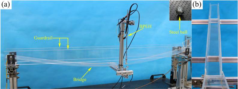 双稳态桥梁俘能结构模型:(a)桥梁结构 (b)加速轨道