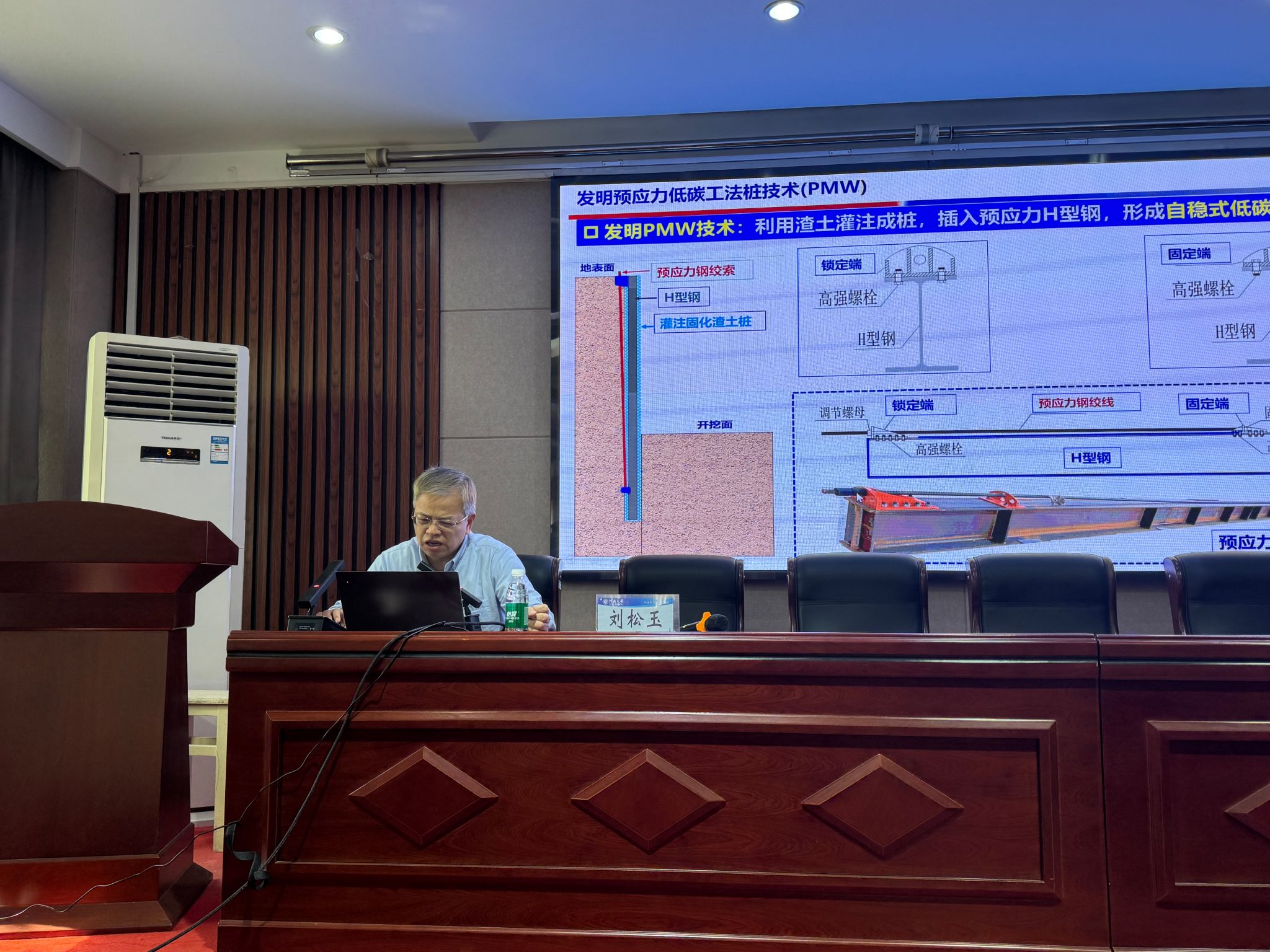 刘松玉教授以国家“双碳”战略为背景,详细介绍了团队在低碳、固碳地基领域研发的气动地基处理技术、变截面双向搅拌桩技术、碳化固化地基技术等创新成果,讲述了固碳轻质土的原理与方法;并结合科技创新主流范式,详细阐述岩土工程行业的几大创新途径,勉励在读学生要为国家的高质量发展贡献智慧。讨论环节,师生围绕变截面桩中变截面的实现方式等问题,与刘松玉教授展开深入交流。