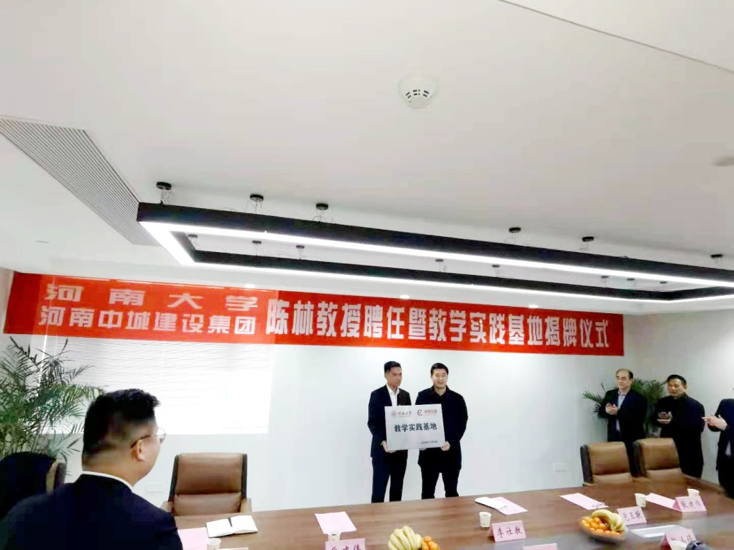 为董事长陈林颁发教授聘书,并为河南中城建设集团股份有限公司授牌。